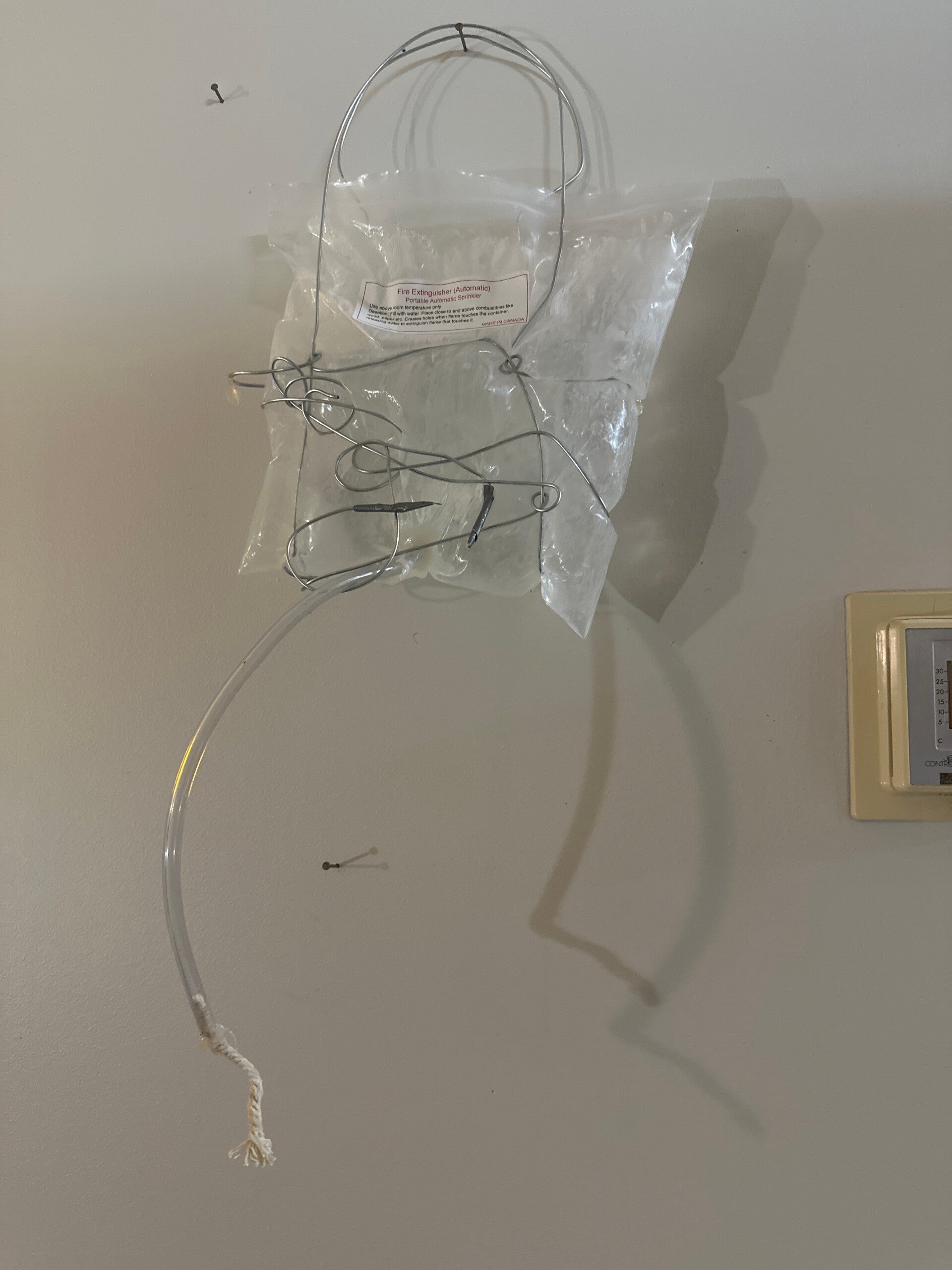 Portable Automatic Fire 🔥 Extinguisher, releases water when fire 🔥 touches the bag to extinguish the fire 🔥 that touches it , plus a fire 🔥 hose is attached to the water bag to extinguish fires 🔥 inside the wall by drilling a small hole 🕳️ into wall inserting the fire hose to extinguish fire 🔥 inside the wall which fire crews has difficulty reaching with their hoses , just hang it on a nail around your house and can even be placed in the attic to secure wooden structures of the roof and ceiling! Just fill the bag with clean tap water and the portable automatic fire extinguisher will do its job like an AI 🤖.